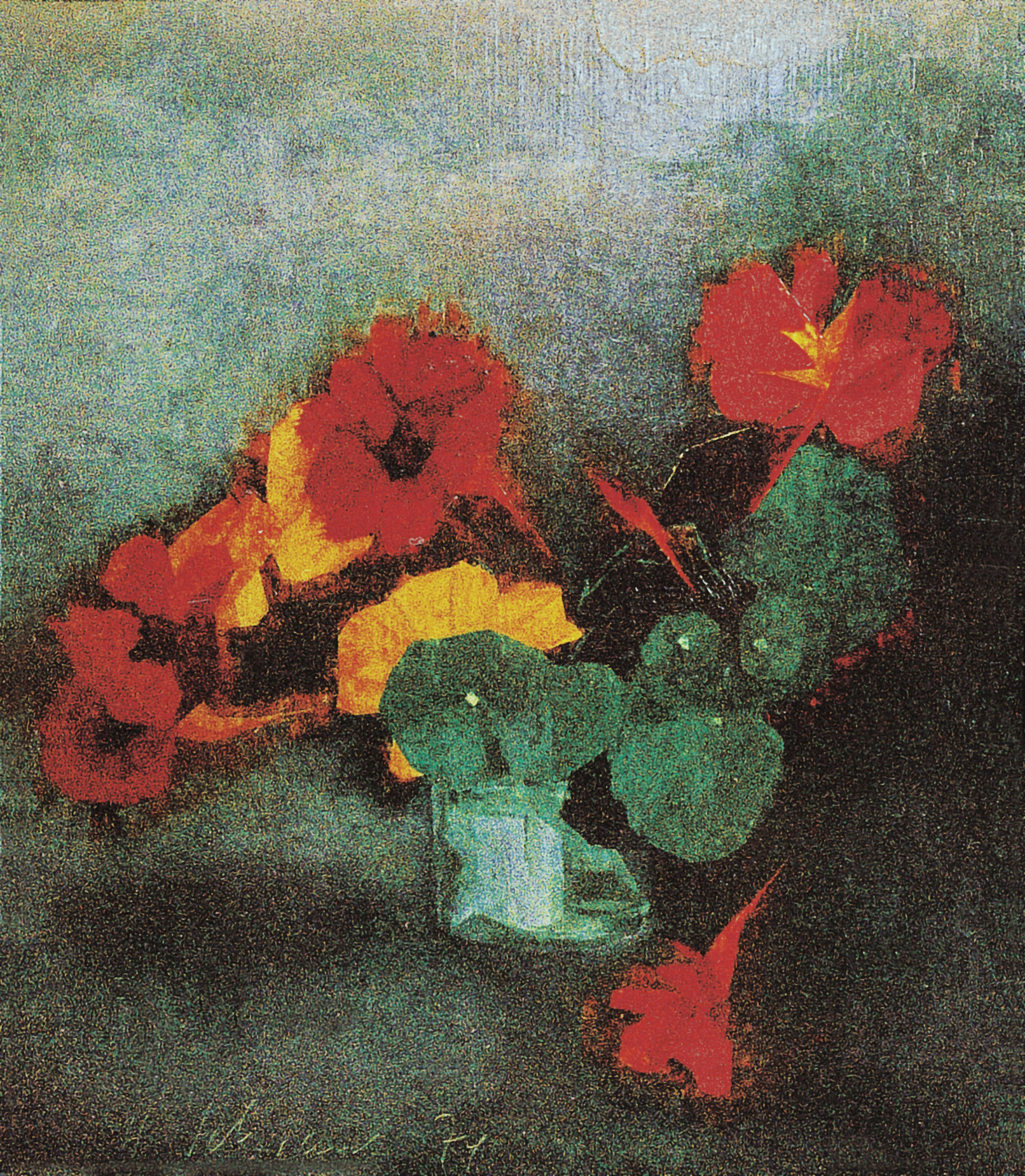 Kleiner Kapuzinerkressestrauß, Öl 1974, 28 x 24 cm
